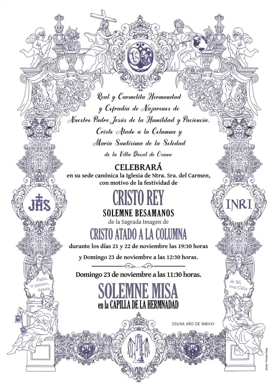 Nuestra Real y Carmelitana Hermandad celebrará, un año más, la Festividad de Cristo Rey del Universo, con la que culmina el año litúrgico de la Iglesia.